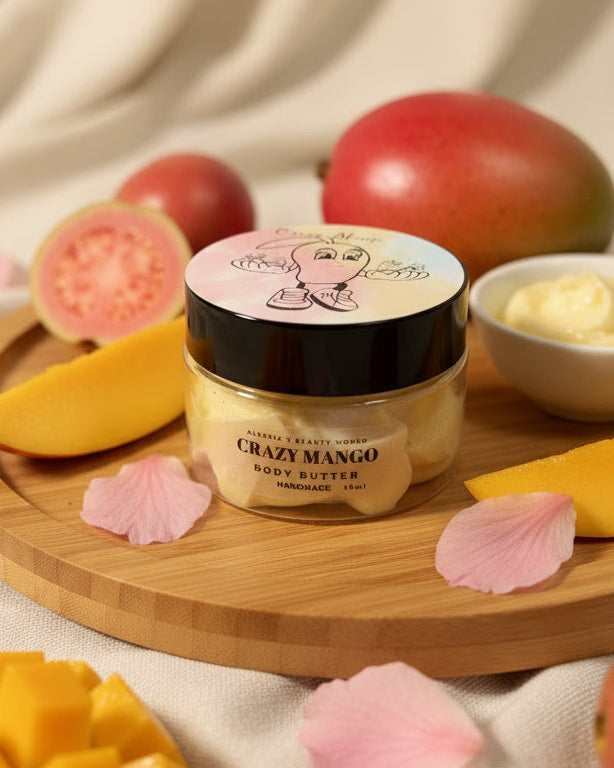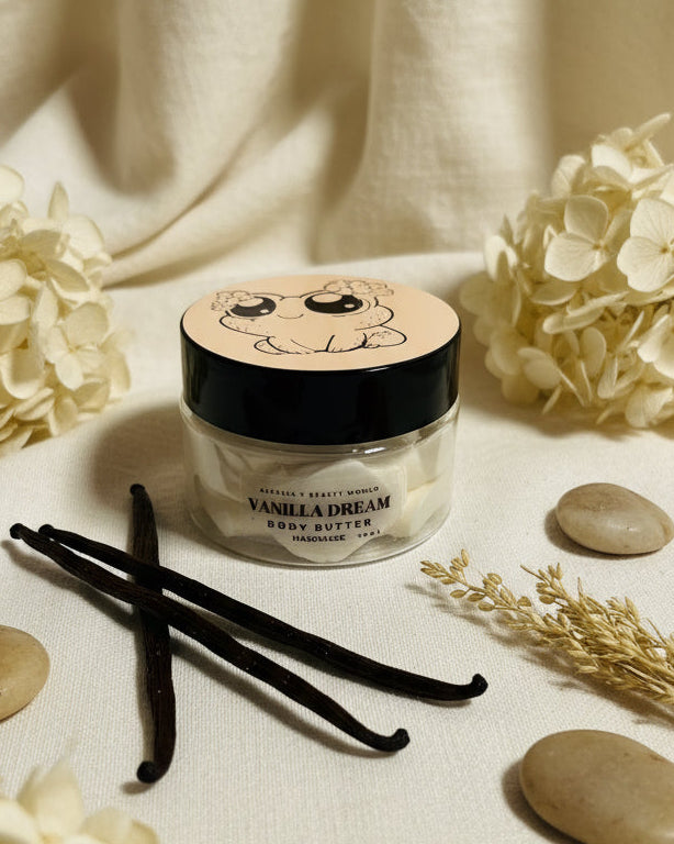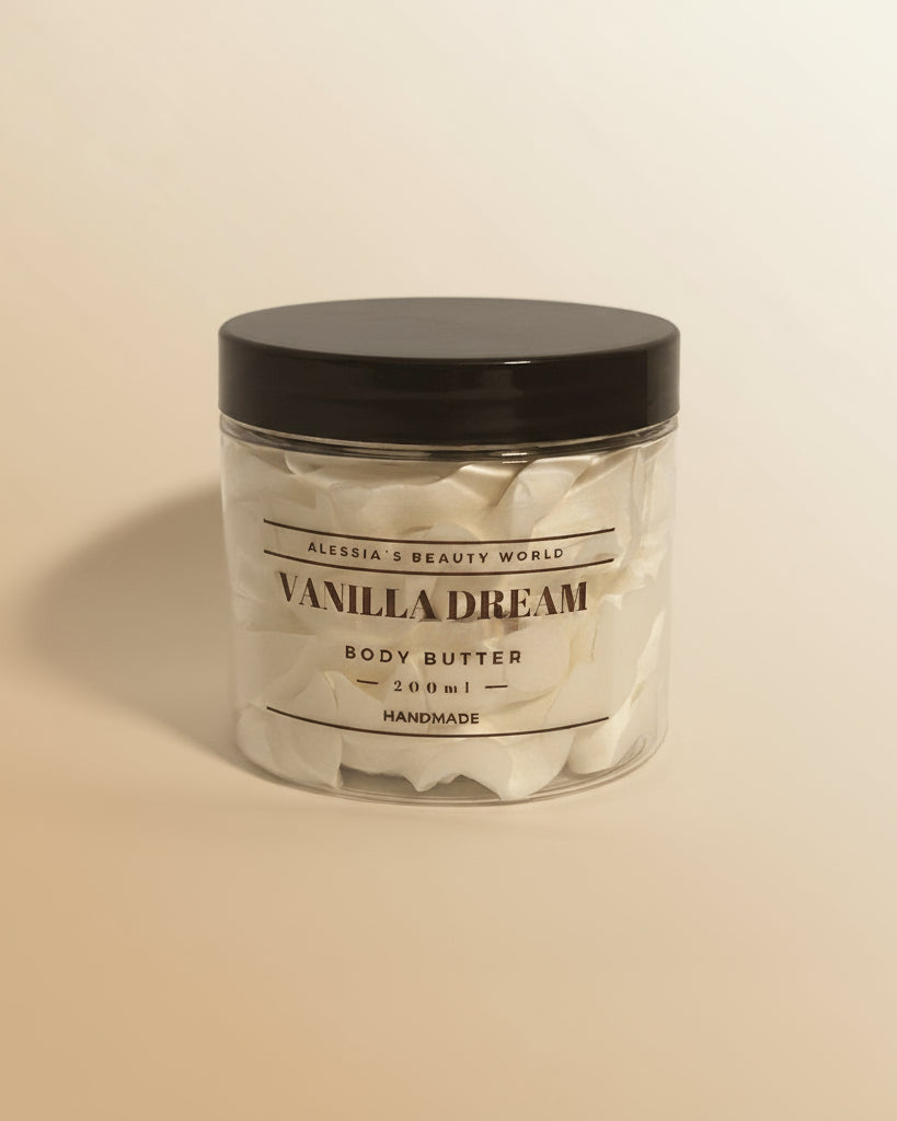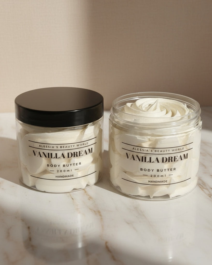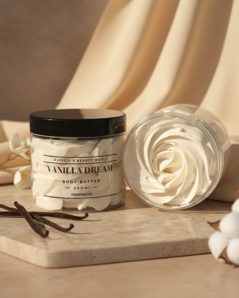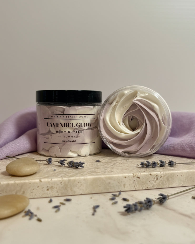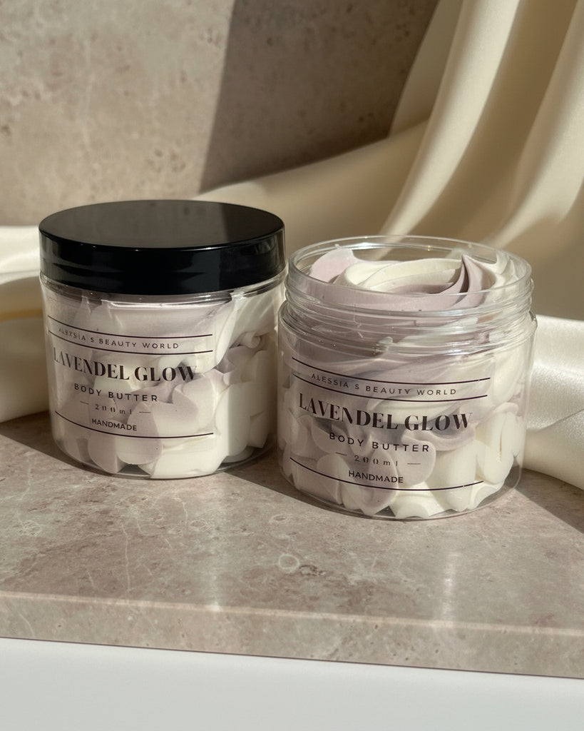 Entdecken Sie unsere handgemachte Bodybutter aus hochwertigen Zutaten wie Sheabutter, Mangobutter, Kakaobutter und Mandelöl. Perfekt für intensive Feuchtigkeit und zarte, geschmeidige Haut. Gönnen Sie sich natürliche Pflege, die Ihre Haut verwöhnt!